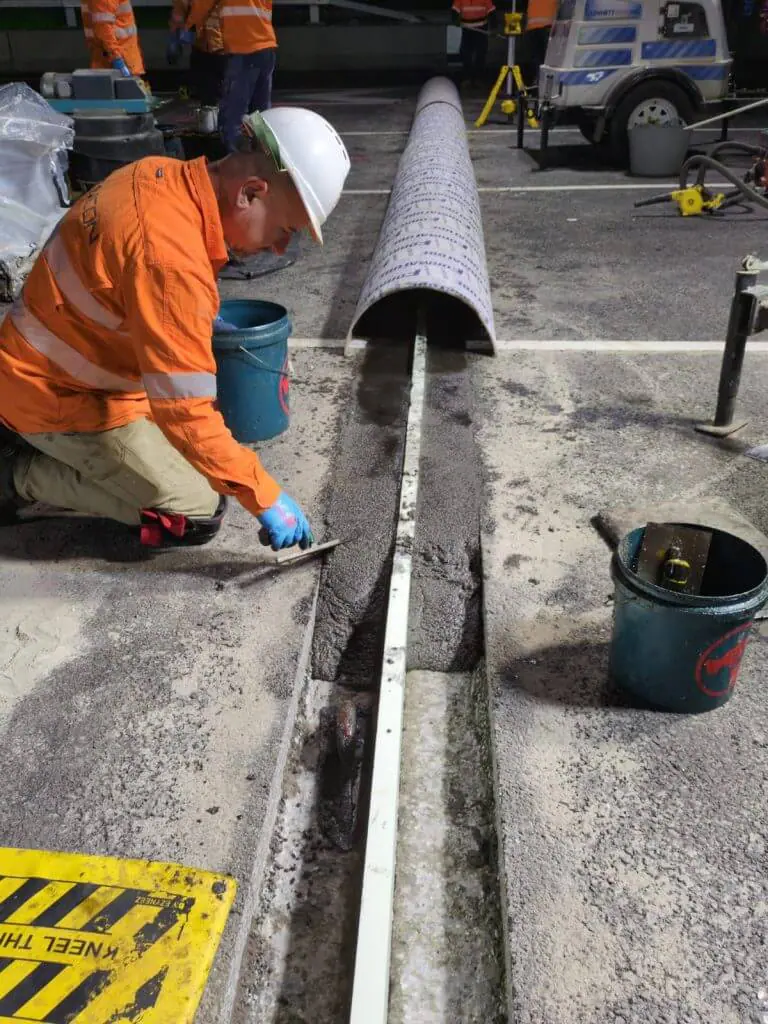 Place the new expansion joint system: This may be a strip seal, finger joint, modular joint, or XJS-type joint.